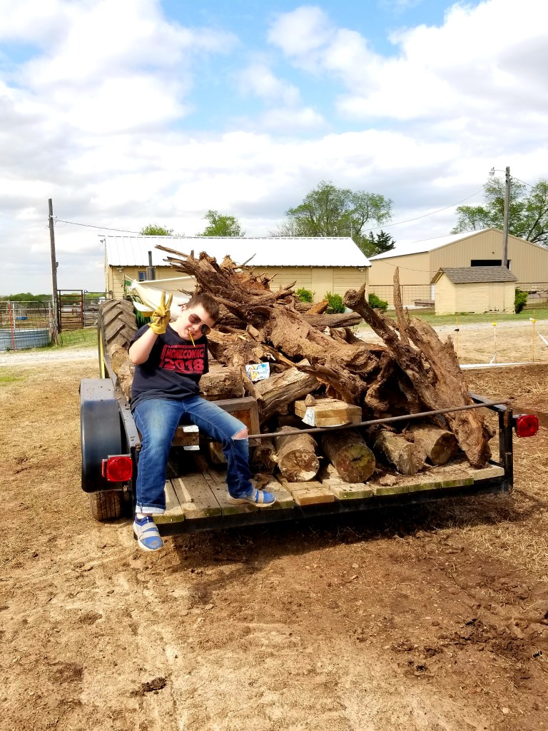 Pulling out stumps & picking up sticks.